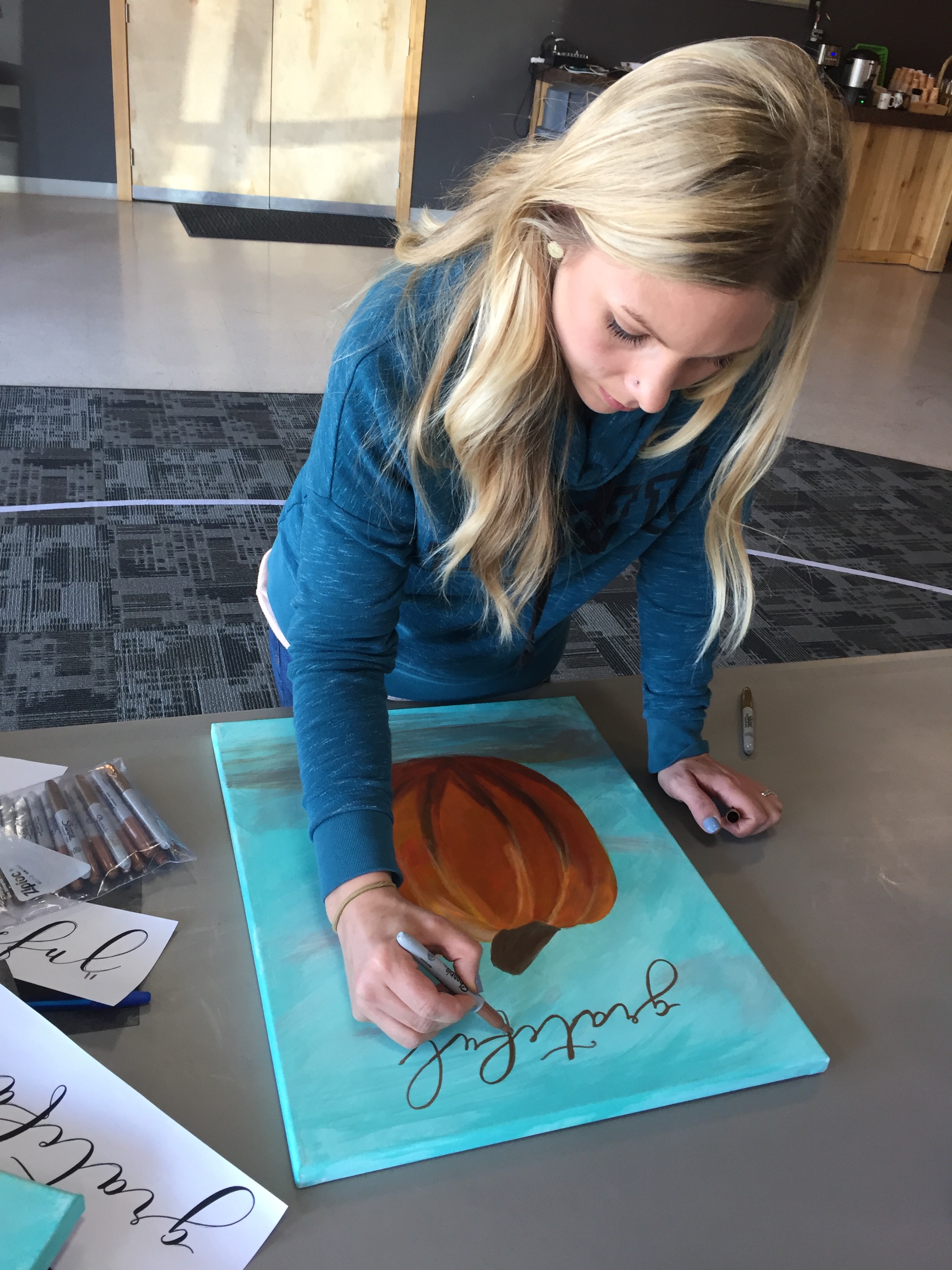 Celebrating the Harvest season with a big, grateful pumpkin! Every season is the season to be grateful! I’m so grateful for so many blessings, not the least of which is the joy painting with a fun group of friends!