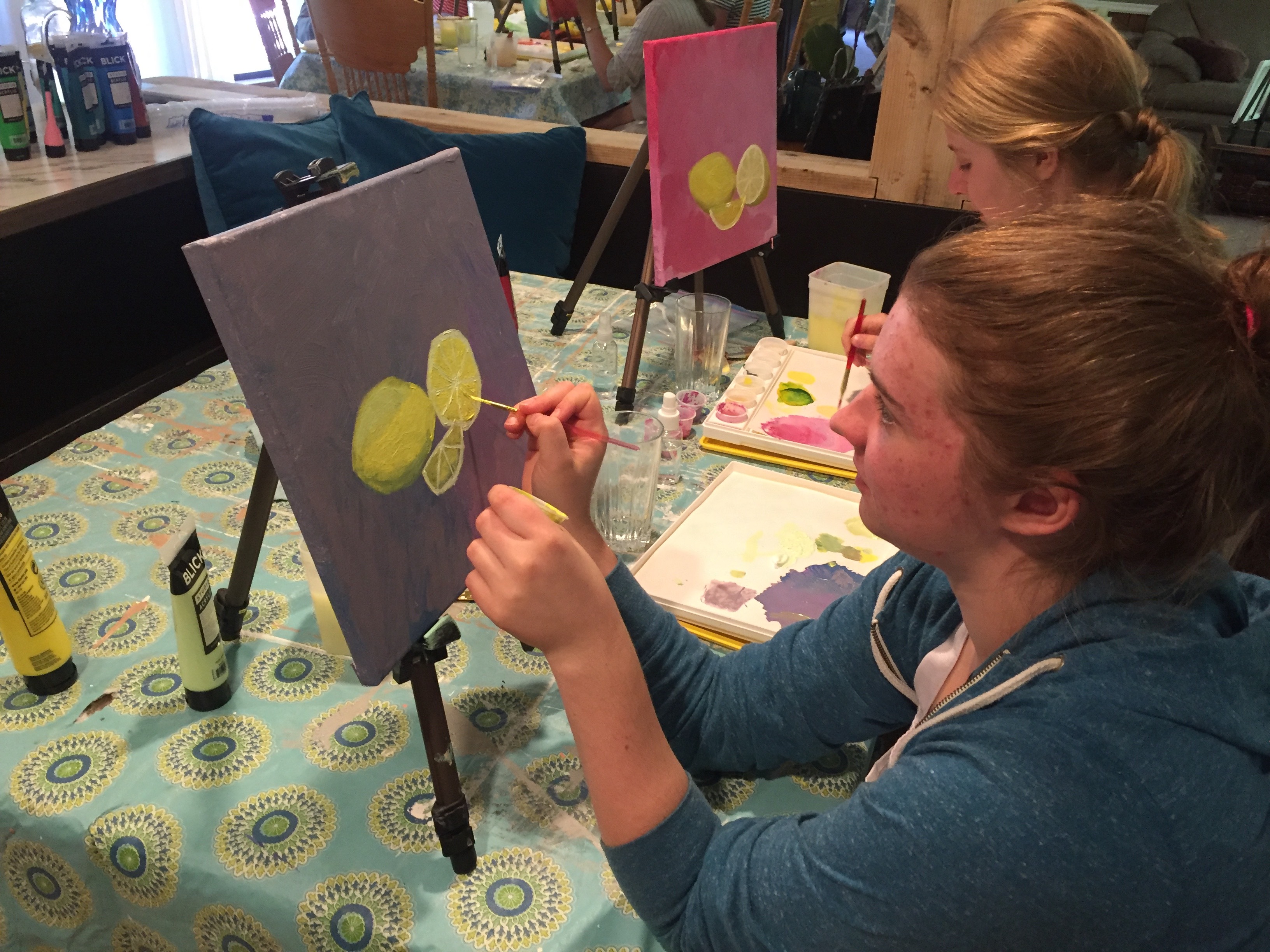 Ok, maybe finishing a painting of lemons in a couple hours while visiting with friends isn’t as easy peasy as one might hope, but it sure is a great way to “squeeze a bit more fun out of summer! It was also “refreshing” to try something a bit different with this group. Rather than walking them through a painting step by step, each artist chose their own color scheme and set up their own still life, so I just walked around giving them pointers. I really love how each creation is so beautifully unique (and there’s not a “lemon” in the bunch)!